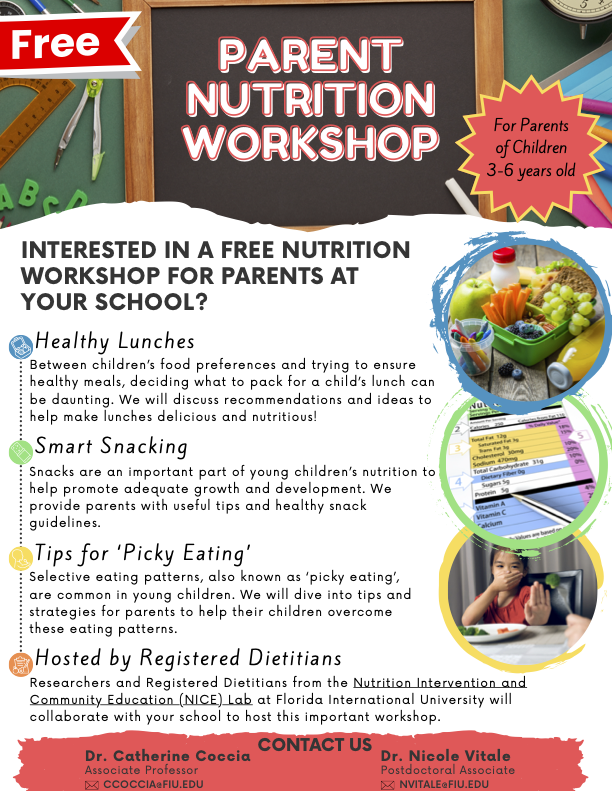 Contact Dr. Catherine Coccia and Dr. Nicole Vitale for more information about their Parent Nutrition Workshop!